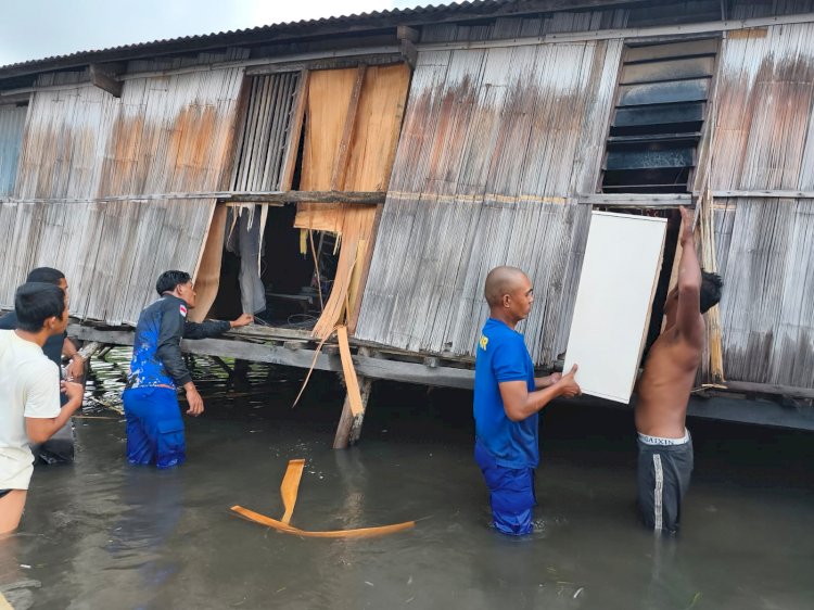 Aksi Spontan Polisi Perairan Sikka, Bantu Warga Selamatkan Harta dari Rumah yang Ambruk
