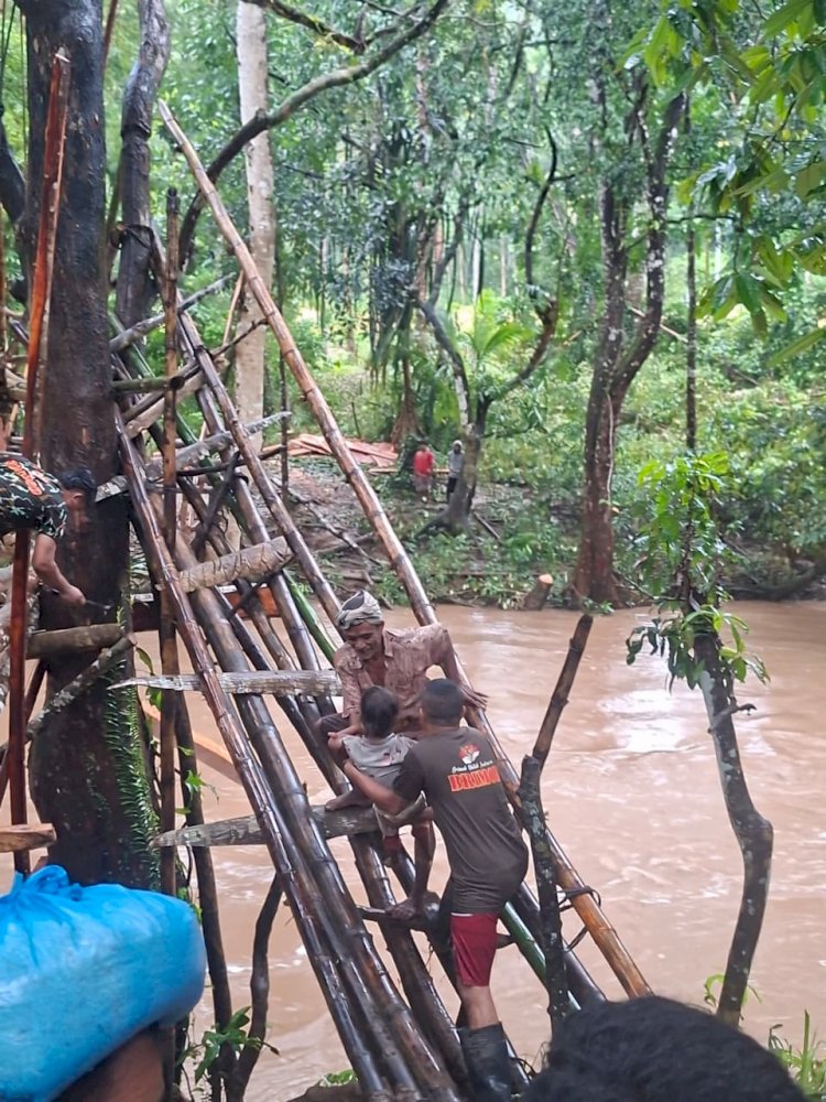 Brimob Polda NTT Bangun Jembatan Darurat di Desa Dikira Sumba Barat Daya, Akses Anak Sekolah Segera Terbuka
