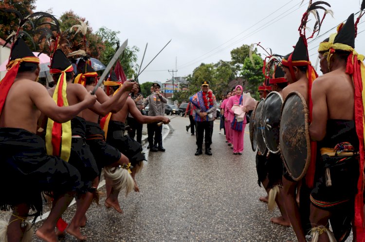 Sumba Barat, NTT - Kunjungan Kapolda NTT Irjen Pol. Dr. Rudi Darmoko, S.I.K., M.Si., di wilayah hukum Polres Sumba Barat berlangsung penuh kehangatan dan nuansa budaya. Kedatangan Kapolda di Mapolres Sumba Barat disambut dengan tarian adat Kataga, sebuah tarian tradisional khas Sumba yang melambangkan penghormatan kepada tamu kehormatan. Selasa, 10/3/26.