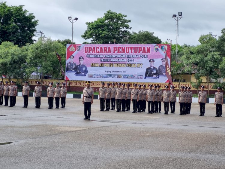 Kupang — Kapolda Nusa Tenggara Timur (NTT) Irjen Pol Dr. Rudi Darmoko, S.I.K., M.Si., memimpin langsung Upacara Penutupan Pendidikan Pembentukan Bintara Polri Angkatan ke-53 Tahun Anggaran 2025 yang berlangsung di Sekolah Polisi Negara (SPN) Polda NTT, Jalan Dodiklat No. 06, Oebobo, Kota Kupang, Rabu (24/12/2025) pagi.