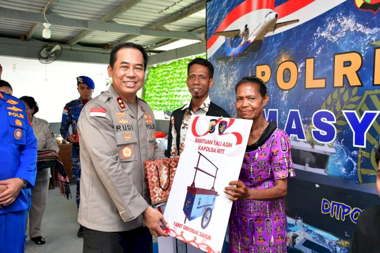 Kupang - Masih di kawasan Mako Ditpolairud Polda NTT, Kapolda Nusa Tenggara Timur Irjen Pol Dr. Rudi Darmoko, S.I.K., M.Si. melanjutkan agenda kemasyarakatan dengan menggelar acara bertajuk “Polri untuk Masyarakat” dalam rangka HUT Polairud ke-75 tahun 2025 yang dipusatkan di Lapangan Tembak Ditpolairud Polda NTT. Kegiatan ini menjadi wujud kepedulian Polda NTT kepada warga penyandang disabilitas yang membutuhkan dukungan untuk mengembangkan usaha mereka.