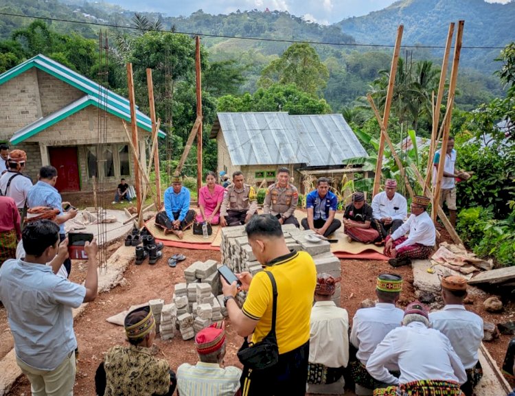 Dengan diserahkannya bantuan tersebut, pembangunan rumah layak huni bagi kedua penerima bantuan langsung dimulai. Kapolres Manggarai melakukan peletakan batu pertama yang diawali dengan ritual adat Manggarai sebagai bentuk penghormatan terhadap nilai-nilai kearifan lokal dan budaya masyarakat setempat.