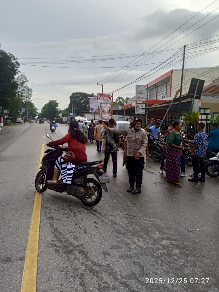 Kupang, NTT – Dalam rangka mendukung pelaksanaan Operasi Kepolisian Terpusat Lilin Turangga 2025, Polda Nusa Tenggara Timur (NTT) terus mengintensifkan pengamanan di sejumlah rumah ibadah, termasuk Gereja St Andreas Lasiana, Kota Kupang, pada Kamis (25/12/2025).