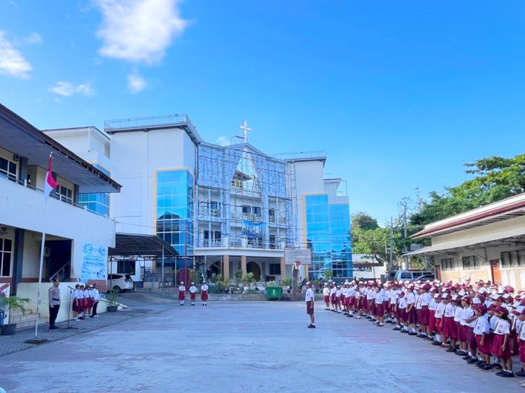 Di SMP Kasih Yobel Kupang, Ps. Paur Sibinturmas Subdit Bintibsos Ditbinmas Polda NTT, Ipda Komang Tangkas, S.H., bertindak sebagai inspektur upacara di hadapan sekitar 300 siswa.
