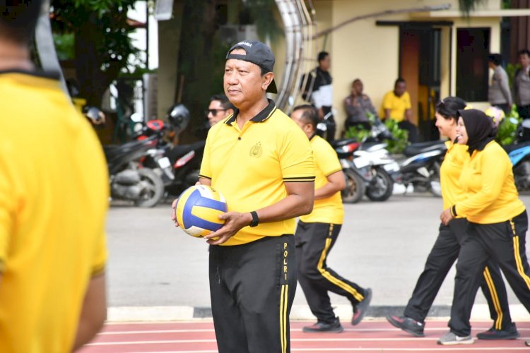 Kegiatan olahraga pagi ini berlangsung penuh semangat dan keakraban. Kapolda NTT didampingi Wakapolda NTT Brigjen Pol. Baskoro Tri Prabowo serta para pejabat utama Polda NTT turut ambil bagian dalam pertandingan bola voli persahabatan melawan tim Polwan Polda NTT.