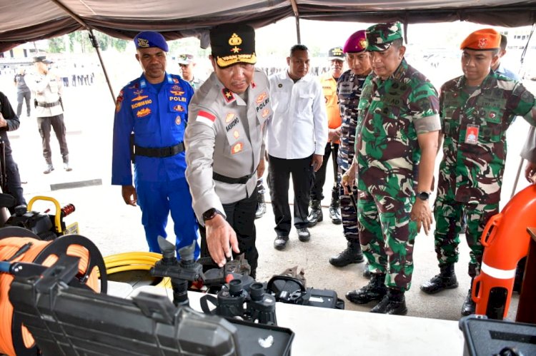 Usai pelaksanaan apel, Wakapolda NTT bersama Forkopimda melakukan pengecekan langsung terhadap kesiapan personel, kendaraan taktis, peralatan SAR, serta logistik penanganan bencana. Satu per satu perlengkapan dicek untuk memastikan seluruhnya dalam kondisi siap operasional dan dapat digunakan sewaktu-waktu bila dibutuhkan di lapangan.