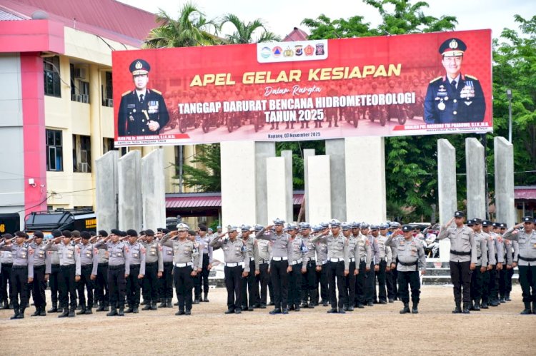 Kupang, NTT – Dalam rangka meningkatkan kesiapan personel dan sarana prasarana menghadapi potensi bencana alam di musim penghujan, Kepolisian Daerah Nusa Tenggara Timur (Polda NTT) menggelar Apel Kesiapan dalam Rangka Tanggap Darurat Bencana yang dilaksanakan secara serentak di seluruh Indonesia, Rabu (5/11/2025).