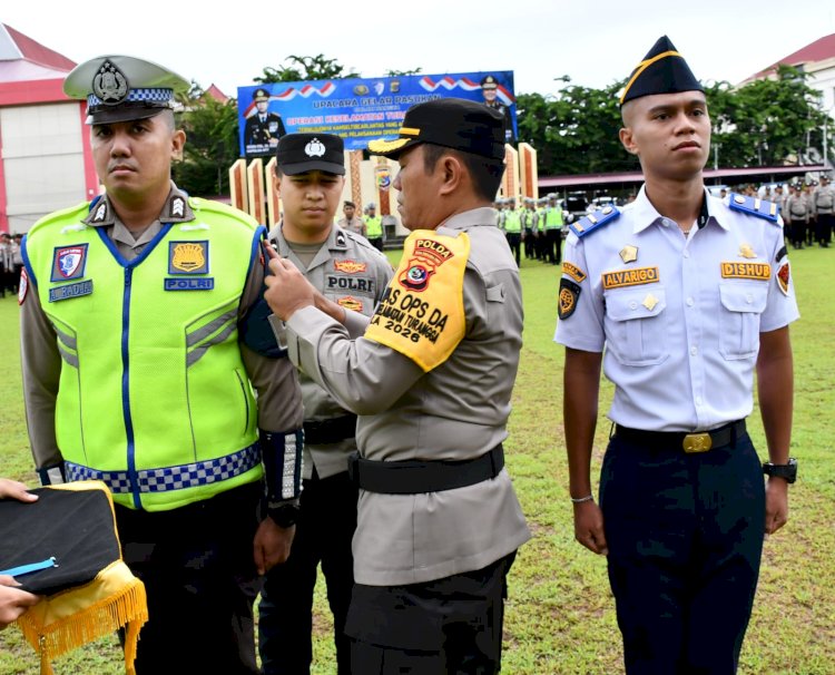 Sebagai tanda dimulainya Operasi Keselamatan Turangga 2026, Irwasda Polda NTT menyematkan pita tanda operasi kepada perwakilan peserta apel.